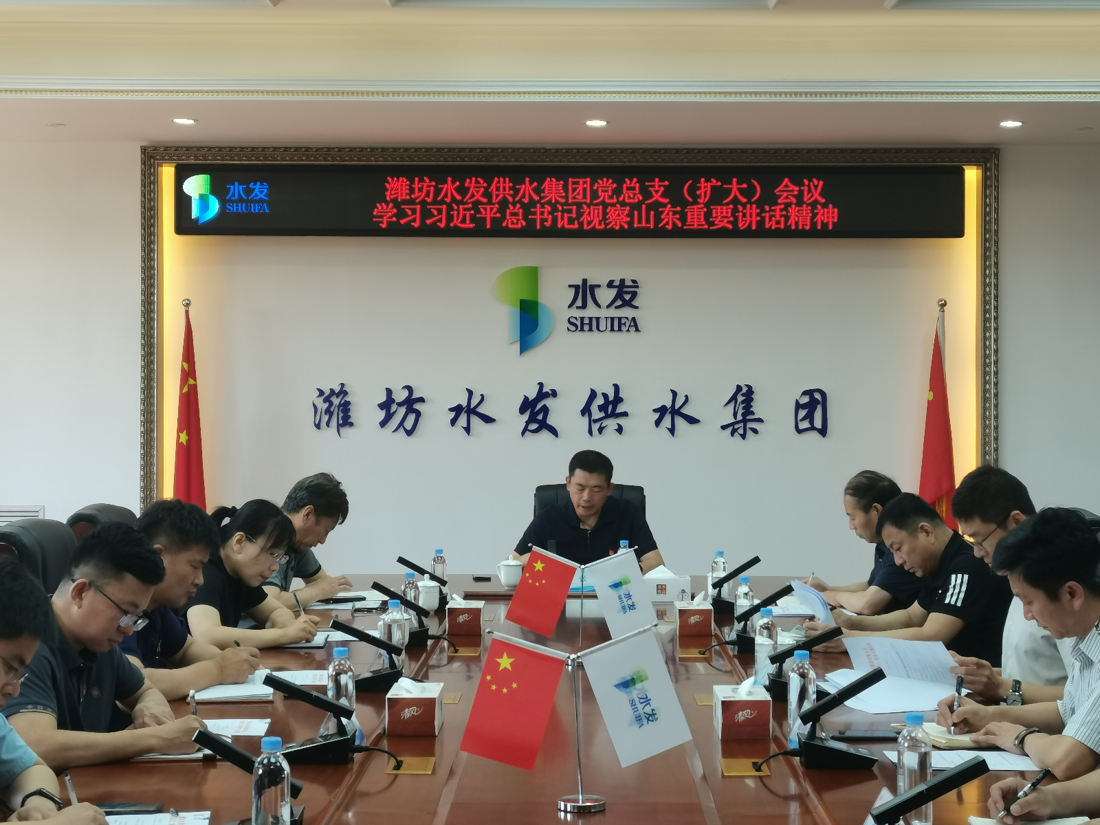 5月28日,濰坊水發(fā)供水集團(tuán)黨總支召開擴(kuò)大會議,傳達(dá)學(xué)習(xí)習(xí)近平總書記視察山東重要講話重要指示精神,認(rèn)真落實水發(fā)集團(tuán)黨委、水發(fā)水控集團(tuán)黨委理論學(xué)習(xí)中心組專題會議部署要求,研究貫徹落實意見。供水集團(tuán)黨總支委員、領(lǐng)導(dǎo)班子、中層以上黨員干部參加會議。